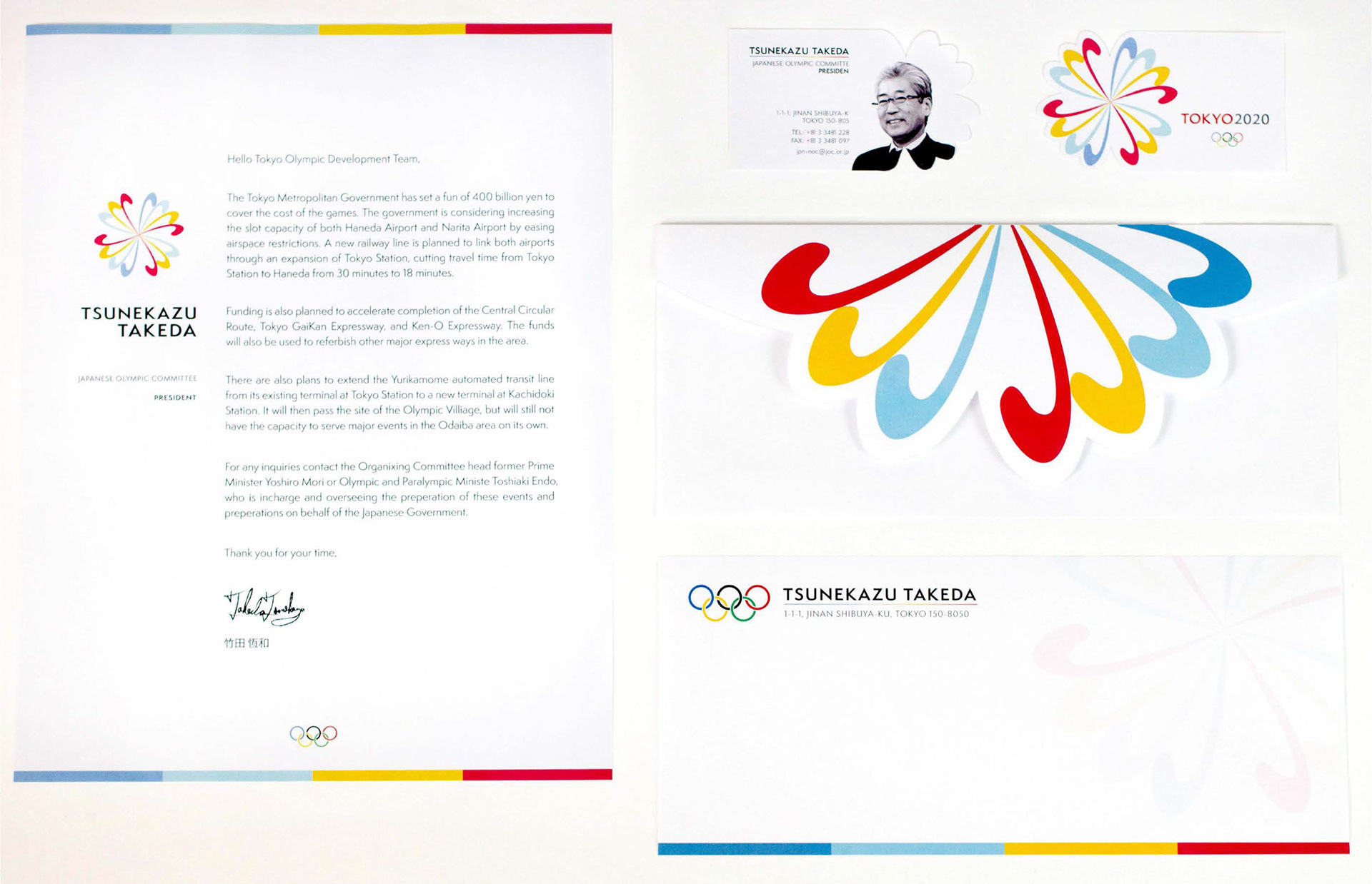 The concept behind the logo was to create a symbol of both Japanese culture and of the history and significance of the Olympic games. The over all design is inspired by the imperial chrysanthemum seal. Each of the "pedals" represent the 14 countries that participated in the first modern Olympic games. The movement created by the circular orientation and the directionality of the "pedals" signifies the unity and camaraderie that is made by the Olympics.